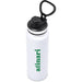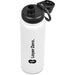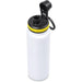 The bottle base is made from strong and durable BPA-free stainless steel with a white powder-coated finish. It has a double-wall vacuum construction, which ensures that liquids inside stay hot or cold for hours.